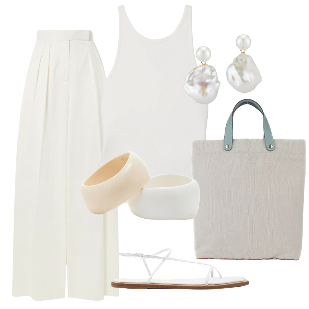 Is there anything better than a white pant? For me, the answer is no. It's easy, elevated, and the best way to dress up or dress down. I'd easily swap the sandals for a heel and the tote for a clutch and it's the perfect look to wear all day or night long.