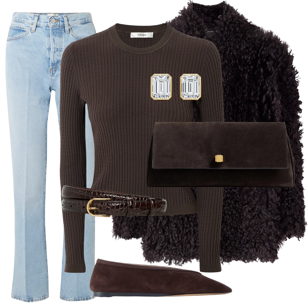 Finding outfits as a "true autumn" is always my goal - so when I come across a special piece like shearling in brown, it's a no-brainer. This is the perfect casual go to: when you're wanting to feel more elevated over the weekend, or something more casual for a night out. These lightwash jeans keep things light, and bring out a brighter tone of brown than a darker wash.