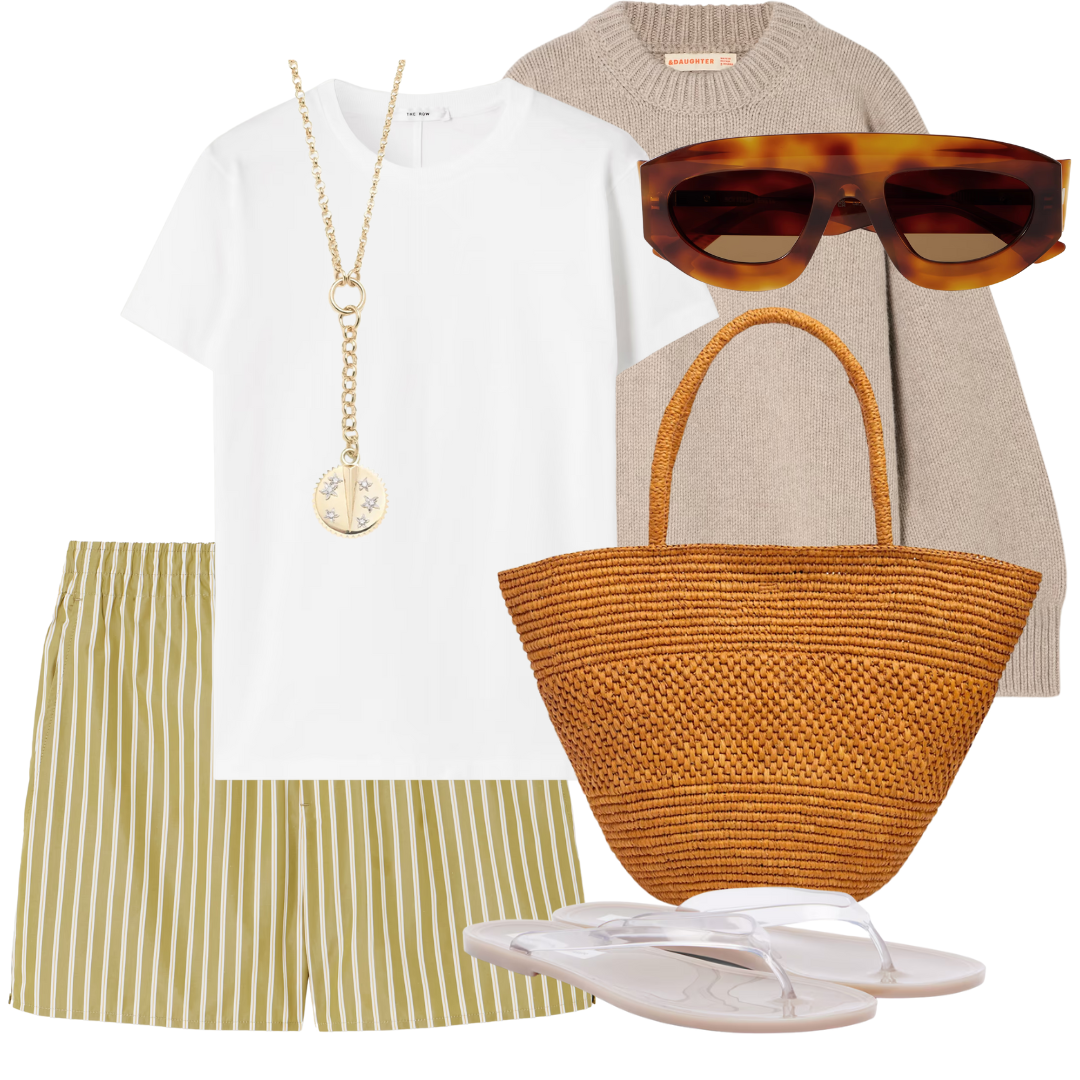What to wear to run to the farmers market, or to grab a coffee down the street. I am always looking for ways to dress up the boxer short trend without feeling like PJs, and accessories like a long necklace and layers (like a sweater over my shoulders) always does it for me.