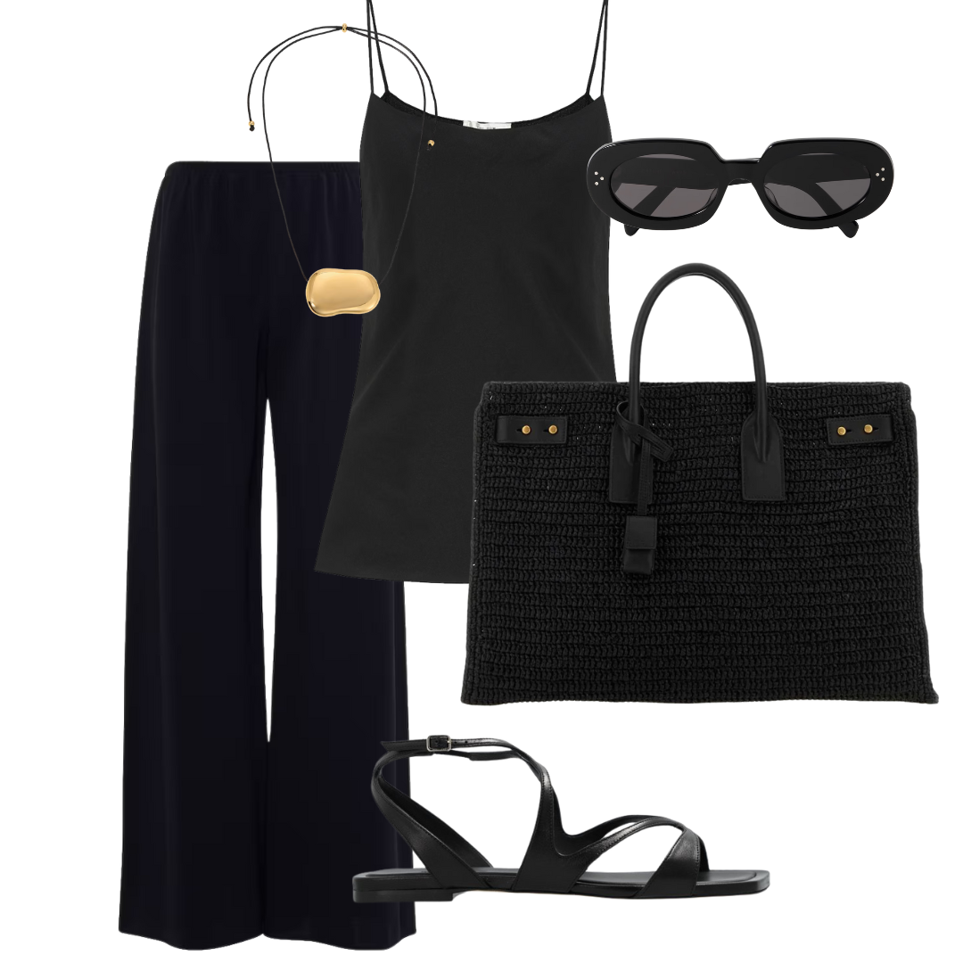 What to wear in the city that feels cool & chic, but still appropriate for Summer? A slinky tank, well fitting trouser, plus paired with an easy sandal. Black raffia is an elevated take on a Summer look, and this monochrome look is one way to feel polished no matter the season.